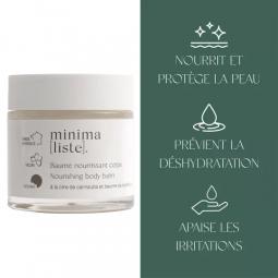 Le Baume Nourrissant Corps Minima[iste] est un soin 100% naturel et végan, formulé à base d'huiles végétales et de beurres végétaux bio pour hydrater intensément et en profondeur les peaux sèches et sensibles. Sa texture riche et onctueuse pénètre rapidement sans laisser de film gras et offre une sensation de confort et de bien-être immédiat.