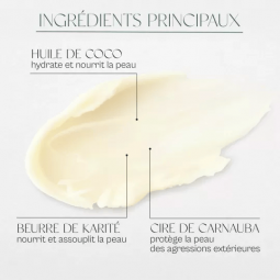 - Cire végétale de carnauba :Riche en acides gras et antioxydants, la cire de carnauba possède également un fort pouvoir filmogène et protège la peau des agressions extérieures.
